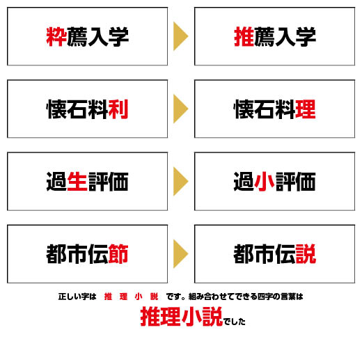 正しくした漢字を組み合わせてできる四字熟語は何でしょう?