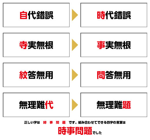 正しくした漢字を組み合わせてできる四字熟語は何でしょう?