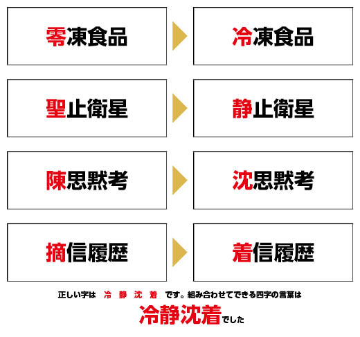 正しくした漢字を組み合わせてできる四字熟語は何でしょう?